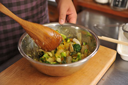 パルメザンチーズ、塩、こしょうを加えて混ぜてから、