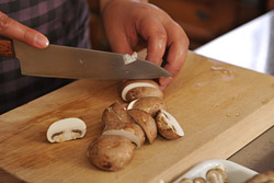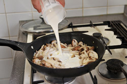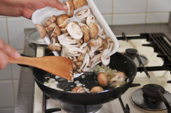 マッシュルーム、しめじを入れ、中火で炒めます。