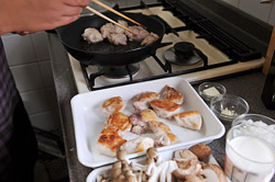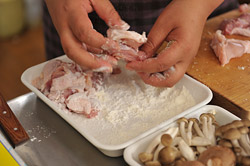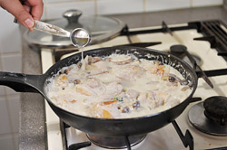 鶏肉を戻して、混ぜながら3〜4分煮ます。 |