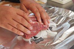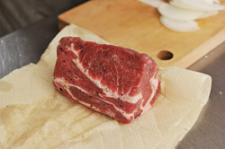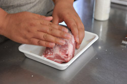 豚肉を冷蔵庫から出し、常温にしておきます。