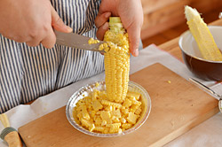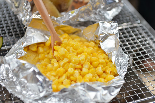 バーベキューというと、まるのままのトウモロコシを焼く、