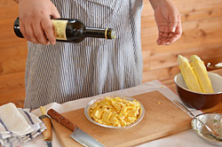 風味のことなる3つのチーズを、とろとろになるまで蒸し焼きにします。