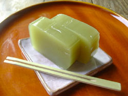 | 新緑の季節に新茶色のお菓子を。 5月の日射しに透ける新緑って、 どうしてこんなにキレイなんでしょうね〜。 「〜だから」とか科学的に答えられたりしても 困るんですけど、毎年、新鮮に驚けるほど、 今あふれてる緑色ってキレイですよね。 こんな色があるってコトが、スゴい..。 どーゆー人生かとか関係なく、 なんだか祝福されてるカンジ。 で、そんな新緑の季節を逃さずに書いておきたい お菓子を見つけました。 正しくはいただきモノで、この度はじめて知り、 これまた“新鮮な驚き”を覚えてしまったの ですね〜〜。(あ、因に新鮮に驚き易いです。多分) ![]() 羊羹なんですけどね、京都の友人から頂戴しました。 これまで羊羹は『とらや』の“おもかげ”とか 黒砂糖風味のものが好きで、赤とか緑とか、あの、 小豆でない色のついたのは、 どちらかというと敬遠してたんです。 で、このおみやをイソイソと開けようとしたら お茶の羊羹と書いてあり 「あららー..」と思ったのも束の間、 中を見たら絶句するほどキレイなお茶の緑色なんです! 器に出してみたら、よりキレイな半透明の緑茶色で そんな感動を胸に食べてみたら、おいしいコトっ!! あっさりと甘くて、ほのかにお茶の香が広がって。 お隣りのウチの藤の花が揺れるのを見ながら、 母と2きれづつほどいただいて、 「こういうのがシアワセな午後なんだなー」と、 シミジミうららかな一日を過ごせました。 『鍵長』というところの品です。 写真に撮ってみたら、 なかなかそのままの色が出せなかったのが残念。 な〜んか、芋ようかんっぽいでしょ..? (イヤ、芋ようかん自体はカナリ好物ですけどネ。 そーいえば、今度、書こう。) ま、「もっとキレイな色らしい」という期待(?)を 実物を目になさるその日まで 持っていただくというコトで、 ゆるしてね〜。 またね。 わたなべ まり 『鍵長』(かぎちょう) 住所:京都市下京区鍵屋町通室町東入ル 鍵屋町331 電話:075(351)3182 営業時間:8時〜18時 定休日:水曜日・第3日曜日 訂正と追伸♪ まず、お詫びです。 「『六花亭』の札幌の本店」と書きましたが、 本店は、帯広でした! 何通かご指摘いただいて(..とても柔らかい 親身なご指摘で、嬉しかったです) 取り急ぎ、問い合わせ判明いたしました。 私も、馴染みの横浜の店が、もし東京本店なんて書かれたら まっ先に「違う〜!」と叫んでいる筈。 帯広のみなさま、六花亭のみなさま、ごめんなさい。 お詫びします。 それから『鍵長』の挽茶羊羹ですが、 その後友達に聞いたところ、彼女のお母様が、 ず〜っと親しくなさっている小学校の先生から おもらいになった物だそうです。 ..お母様の小学校の時の先生、 ということはそうとうご高齢で、 でもとてもお元気だそう。 人がずっと住まい続ける 京都らしいモノの伝わり方だなぁ〜と またシミジミしたので、追伸しました♪ |