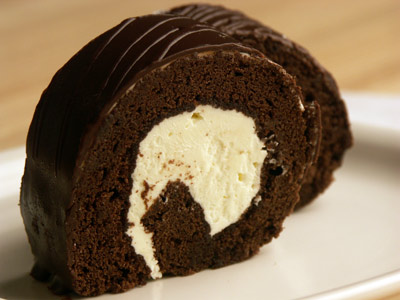 チョコレート生地のロールケーキに