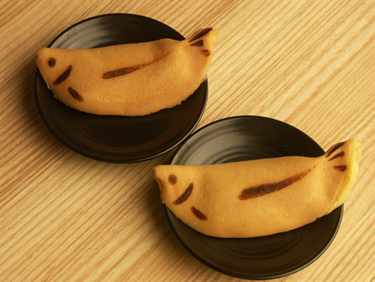 求肥か餡が包んであって鮎の格好をした、あの和菓子です。