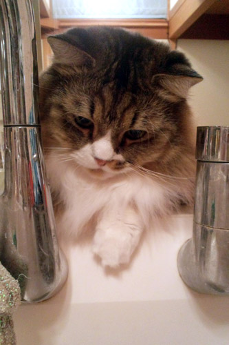 で、起きると、水道の蛇口やシンクをじっと見たりします。