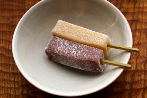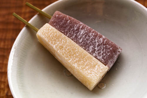 白身と小倉並餡を混ぜた二色の求肥ものだそうです。
