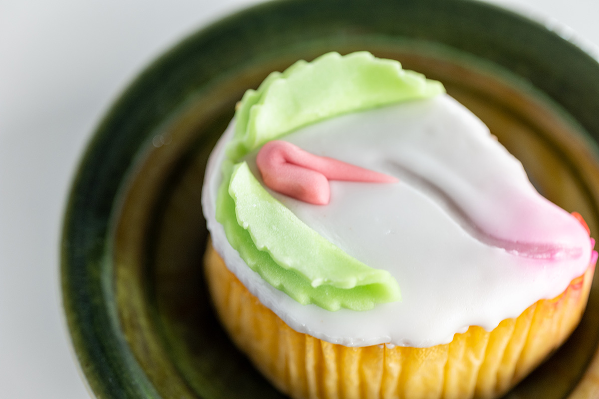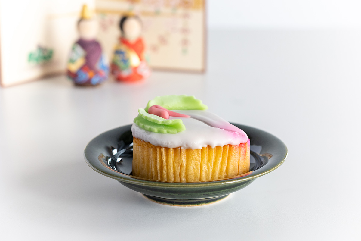 ひなまつりには、みんな桃カステラをほおばるもの、と