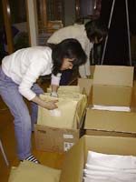 | Tシャツの発送をはじめました! Tシャツの発送がスタートしましたよ。 第1便は、29日(月)に発送したので、 今日あたり届いている人もいるのではないでしょうか。 あ、メールがきました。 やったー、ちゃんと届いてるみたいですね。 ちなみに、発送が終わっているのは、 約3500枚の注文のうち、1割くらいですから、 ほとんどの方は12月半ばくらいの到着になります。 「 Tシャツ届きました。」 こんにちは。 たったいま届きました。 それも宅建主任者試験の合格通知と一緒に! なんていい日なんだろう。 Tシャツは本当にかわいいし、 手触りもよくて気に入りました。 あのお値段でこのかわいさ、 ああ全色買えばよかったです。 今からダッシュで郵便局へお金振り込んできます。 スタッフのみなさま、おつかれさまでした。 どうもありがとう。チャオ かずこ 「Tシャツ届きました!」 今朝方、まだ私がぐうたら寝ている間に 「ほぼ日Tシャツ」が届きました! 思っていたとおりの、かわいらしくも品のあるTシャツに ほぼ日さすがっっ! と思いましたね。 私のTシャツはグレーのXS。 さっそく着てみたところ、胸の上にくるロゴも ちょうど良い具合で、生地も心地よく、 Tシャツランキングではかなり上位にくい込んでいます (Tシャツってけっこう難しいですからね)。 しかし、まさに冬突入の今日この頃、 Tシャツを(ロゴが、見えるように!)着こなすには どうしたらいいのかなぁ……と思案すること数秒。 「あ、重ね着」 寒い部屋で急きょ始まった にわか起き抜けファッションショー。 結局、細身のタートルネック、 あるいは長袖Tシャツを下に着込み、 その上にこの「ほぼ日Tシャツ」を重ね着すれば、 なんとか暖かい室内で真冬でもロゴを自慢げに、 でもさりげなく見せびらすことが可能であると判断。 (重ね着も生地の良さあってのこと。 さらりと着ないと、粋じゃない)。 さっそくバイト先に着ていこうと思います。 「アッッ!」というみんなの顔が 目に浮かぶわ……楽しみ。 ということで、糸井さん、ならびにスタッフのみなさま、 素敵な企画どうもありがとうございました。 上質の「遊び」は人の心を こんなにも贅沢にしてくれるってこと、 これからもバシバシ追求おねがいします。 私もがんばろっと。 中村ヨーコ まいどありがとうございます! ほぼ日Tシャツ、どーですか? わるくないでしょう? むしろよいでしょ。 ダッシュで郵便局に行ってくれるなんて……、 ありがとうございます。 ここの部分読んで、もぎカエル部長は泣きました。 泣くの、流行っちゃってます。 重ね着したりして、見せびらかしてくださいね。 とーぜんのことながら、 Tシャツの発送はほぼ日スタッフがやってます。 業者さんに発注したTシャツが完成すると、 Tシャツはトラックに積まれてほぼ日にやってきます。 サイズ、色ごとに、ドッサリ届くんですよ。 発送作業をする2階まで重たい段ボールを運ぶのよ〜。 Tシャツは2枚くらいまでなら、 B4の封筒に入れて、郵便で送ります。 宛名書きは、住所、氏名の書かれたシールを プリントアウトして、封筒にペタペタ貼ります。 darlingからの手紙と郵便振替用紙を同封して、 発送用封筒のできあがりです。がんばれ西田部長。 Tシャツを梱包するときは、けっこう気をつかいます。 注文内容とちがうTシャツを入れてしまったら、 たいへんややこしいことになってしまいますからね。 サイズ、色のバリエーションが多いから、 注文のパターンがたくさんあるんですねー。 小さなことからコツコツとやっていくしかないのだ。 梱包作業が終わったのは夜。 封筒の枚数を数えて、郵送料を計算します。 郵便局まで運ばないといけないから、 運びやすいように、段ボールに入れなきゃね。 たまたまご近所にある“麻布郵便局”は、 なんと24時間、郵便物を受け付けています。 郵便局って働き者だなぁ。 よっしゃ、オレらも郵便局に行くぜ! ってことで、次回は、郵便局篇をお送りします。 (つづく) |