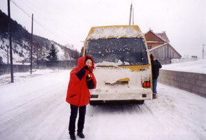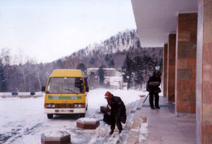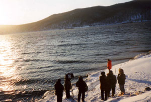 ロケバスに乗り込み、バイカル沿いの道を走り、