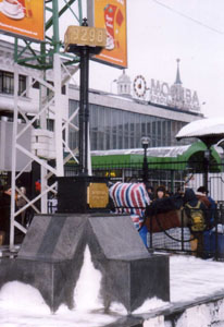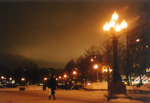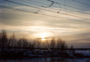 1/11/2002 シベリア鉄道 DAY 16 最終目的地点モスクワへ とうとう今日は、 この旅の最終目的地点モスクワに到着する‥‥。 4時半に起きて (なんで4時半きっかりに起きることが多いんだろう)、 頭が痛くて焦る。 もしや、これが、二日酔いというものなのか? まさかなぁ‥‥ヤバいなぁ‥‥と思いながら 無理矢理もう一度眠る。 7時半頃に再度起きると、けろっと治ってた。 午前中は色々列車内での最後の撮影をしている。 時間の経つのが遅い。 だんだんモスクワに近付くにつれて、 列車はスピードを落として走っている。 私は、何故かテンションが下がってきているのに気付く。 ずっと目指してきた場所でしょう? やっと日本に帰れる日も近付いたでしょう? 何故だろう、ってずっと考えていた。 結果、まず第一に、 イナカモードと都会モードの切り替えが 出来ていないという事。 シベリアに2週間いたせいで、 ビルや車などの光景に目が慣れていない。 文明に対する、身体の軽い拒否反応。 第二に、 モスクワ近郊に入ってからというもの、 窓から見える雪やビルなども景色も、 全体的に灰色が多くなってあまり綺麗ではなくなった。 線路沿いの木々も薄く、切り倒されているのが目立った。 雪も行き交う車のせいで東京のように溶けて べちゃべちゃしていそうだし。 第三に、 もうすぐ旅が終わる、さみしさ。 ‥‥これが案外一番大きいのかもしれない。 四六時中一緒だったこのクルーと離れてしまうこと。 クルーはもう次の仕事がすぐに控えていて、 次へと切り替えていくこと。 そして第四の理由‥‥ 曇り空に、飽きた。 (こんなことでは心の故郷ロンドンには住めないかしら。) 列車での最後のインタビューを撮影した。 素直にこの気持ちを言った。 でもそれだけ、 シベリアという広大な地区で教えられたことが 私にとっては重かったということだ。 列車から眺めるモスクワは、 全体的に、ロンドンのような灰色のイメージ、 でももう少し暗い。 いかにもモスクワらしいタマネギ頭の建物が ところどころに見えてくる。 車内最後の昼食を食堂車に食べに行く。 ロシアチームが夜呑んでいる間に いつのまにか仲良くなったらしい食堂車のコックさんが 私達のために腕をふるってくれるそう。 とにかくすごい量で、 ボルシチ、肉、ペルメニスープなど。 美味しかったぁぁ。お腹いっぱい。 クルーが最後の最後の撮影をしている到着までの間、 うたたねしたりしてまったりする。 まだブルーな気持ちを引きずっている。 ちなみに、到着一時間前からトイレは使えなくなる。 (ようは、通常は走りながらそのまま流していくので‥‥ 市内に入って速度を落とすと、 流せなくなるということ‥‥。) 15時頃、ついにシベリア鉄道最終駅モスクワ到着。 列車の中でなんとなく感じていた空白は、 駅の建物に 大きな「MOCKBA」(=モスクワ)の文字を見た瞬間に、 ゆっくりとお湯が染みわたるみたいに満たされていった。 あぁ着いたんだ、横断してきたんだ、この列車で。 長い長い列車を前から眺めながら、 じんわりとそう感じる。 荷物を抱えてホームいっぱいの人々に流されながら、 モスクワのあったかくて、湿っている空気を吸い込む。 線路の一番終わりに建つ、 シベリア鉄道9892キロの記念碑。 自分で自転車をこいでいるわけでもないので 達成感はそんなにないけれど、 この地点から線路が9892キロも ずーーーっと延びてウラジオストックまで繋がっている、 とイメージすると鳥肌がたつ。 しかし、記念碑で立ち止まっているのが大変なほど、 とにかくものすごい人の波。 これぞロシア‥‥! 渋谷のスクランブルなみ。 駅舎の中を通り抜けて、 人込みにまぎれ込んで歩いているうちに、 もう一人の都会の自分が戻ってきた気がする。 東京やニューヨークにいる時の、身体のリズム。 歩くリズム。 駅の外に出ると、 ニューヨークのPenn Stationとか タイムズスクエアみたいな感じがする。 イルミネーションやネオンがキラキラしていて、 人々が無表情に淡々と歩いてゆく。 大きなカメラで撮影が行われていても 好奇心の目を一瞬むけるだけで あまり動じずに通り過ぎてゆく。 広い道には、トローリーバスが走る。 クラクション、人々の足音、水がはねる音、 たくさんの人々の会話。 2週間聞いていなかった音が溢れる。 バスに乗って20分ほど走ってAerostarホテルへ。 なぜかエンヤの曲が頭をぐるぐる。 バスからの風景は、ニューヨークにも似ているけど、 もうちょっと地味な ニュージャージー州という感じかな‥‥。 車のせいで雪は汚いけれど、 暖か過ぎて溶けてしまっているようで 道路の端に若干残っている程度。 気温は、マイナス2℃くらい? シベリアの極寒で鍛えられた私達には、 コートいらないかな? っていうくらい暖かく感じられる。 バスから外を眺めている間に、 ゆっくりとスイッチが入った。 もう大丈夫もう大丈夫。 モスクワ、好きになれる。