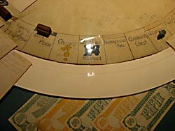 | アメリカモノポリー事情 〜NY、「聖地」アトランティックシティに 行ってきました(3)〜 「最古のモノポリーの巻」 1日目は夕刻NY入りしたこともあって、NYで泊まり、 2日目にアトランティックシティを目指しました。 NYからアトランティックシティに行くには、 モノポリーの権利書にもある「ペンシルバニア鉄道」(!) を利用することもできますが、 バスとあまり変わらない時間にも関わらず、 値段は50〜100ドル程度と、バスよりかなり高いので、 今回はバスで往復しました。 ちなみに私たちが利用したグレイハウンズ社のバスの場合、 アトランティックシティまでの往復が わずか28ドルで済むうえ、 提携カジノホテルから 現金のキャッシュバックがもらえます。 私たちは14ドルをいただきましたので、 往復6時間ほどをわずか14ドルで運んでくれる計算です。 カジノで遊んでくれるからいいよってところでしょうね。 昼過ぎ発のバスを予定していましたので、 午前中はマンハッタンの南にある自由の女神像を観光し、 その後、旅の目的の一つである、 「フォーブスマガジンギャラリー」を見学してきました。 ここは経済雑誌で非常に有名なフォーブス社のオーナーで、 稀代の大金持ちでもある フォーブスさん個人のコレクションを 無料で公開しているものです。 彼のコレクションでは、 1個が数億円する「イースターエッグ」 (その昔、世界一の金持ちであった ロシア帝国ロマノフ王朝の王が 王妃のために毎年のイースター(復活祭)を記念して 贅を尽くして、作らせたタマゴ型の小物入れ。 ダイヤなどがふんだんに使われているのはもちろん、 細工も非常に凝っていて、芸術品である) が有名なのですが、もう一つ有名なのがモノポリー。 フォーブスさんは 「ビジネスの全てをモノポリーで学んだ」と おっしゃるほどのモノポリーフリークでして、 古いモノポリーボードを中心に収集されています。 ここでは、「最古のモノポリー」とされる モノポリーボードを見てきました。 どのモノポリーボードが最古かというのは、 ほんの数年前まで 「チャールズダロウの開発したボード」というのが 定説でした。 しかし、どうもチャールズダロウは 先駆者のゲームを参考にしたのではないかとされ、 版権をもつハズブロ社の調査で、 とある女性の開発したゲームを チャールズダロウが参考にした、 とついに結論付けました。 これは定説を信じてきたモノポラーにとっては 驚天動地の出来事でした。 このギャラリーでは、 なんとチャールズダロウが参考にしたとされる ある女性が開発したゲームのボードも飾られています。 いながらにして最古のモノポリー論争を 振り返ることができるわけですね。 そこで私もにわか歴史家ふうに、 論争を検討してみましょう。 先駆者(女性)の開発したボードをみますと 権利書名に相違があったり、 カラーグループは存在しないものの、 四角形で、角に「刑務所に行け」があるなど、 現在のモノポリーにおける ゲームシステムの一部が垣間見られます。 つまり厳密な意味での「最古のモノポリー」といえます。 ハズブロの見解は間違ってないでしょう。 でも、もう一方のチャールズダロウの作った モノポリーボードは、 土地の名前などがほとんど現在のモノポリーと同じです。 ボードの形はなんと円形!なのですが、 Goマスや刑務所の位置に相違ありません。 ![]() つまり、皆さんが現在遊んでおられる モノポリーのゲームシステムは 間違いなくチャールズダロウが 最初に固めたものといえそうです。 *この最古のモノポリーをめぐる論争は、 海外において高い人気を誇る放送局 「ヒストリーチャンネル」 (日本ではケーブルテレビやスカパーでも)の 「失われた物を探して」シリーズでも 取り上げられています。 |
