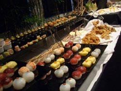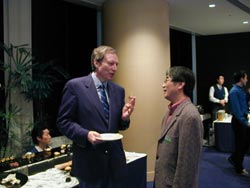 | 世界選手権2004日本大会報告 〜第15回:華やかな決勝の舞台〜 連載上は2004年10月9日の午後。 いよいよ決勝戦が行われます。 季節外れの猛烈な台風が東京を直撃する中、 六本木ヒルズ森タワーの49階に特設された会場は、 決勝を今や遅しと待っております。 決勝卓は日本の能舞台をイメージした レイアウトになっており、 全体的に赤と黒の2色で塗り分けられるデザイン。 そしてその舞台の周りには 世界各国の取材陣がぐるりと取り囲んで カメラを向けているのです。 ![]() 決勝卓は能舞台の上で 雅楽の演奏者もおり、欧米の選手たちにとっては、 エキゾチックな雰囲気に酔いしれることができそうです。 ![]() 決勝を盛り上げる和風の演出 ![]() 選手の入場を待つバンカー<左端>、 ジャッジ<左から二人目>、通訳<右2名>。 バンカーの方は「本物のバンカー」、 スタンダードチャータード銀行の洲崎さん。 非常にモノポリーに理解のある方で、 協会も大変お世話になりました。 この場を借りて御礼もうしあげます。 また会場の一角では軽食と飲み物が用意され、 またサイン交換用のモノポリーボードが サインペンとともに選手それぞれに用意されており、 参加者が親睦を深めることができるようになっています。 このあたりの主催者の気配りは モノポリーの世界選手権ならでは。 ![]() 軽食でも和風の演出、おしゃれ! 単に世界一を決めるだけの大会にとどまらず、 同じモノポリーを趣味にもつ者同士、 そんなに言葉は要りません。 お互いの健闘をたたえ、 貴重な時間を共有できたことに感謝します。 これこそ、モノポリーをやっていてよかったと思える 瞬間かもしれませんね。 ![]() 1988年世界チャンピオン百田さんも、 当時も今回も大会審判長を務められたOrbanes氏と 旧交を深めていらっしゃいました。 ![]() 米国代表と懇談する岡田「現」世界チャンピオン。 「あとちょっとの時間だけの世界チャンピオン」と からかわれ、思わず爆笑! やがて、和服の女性たちに先導されて、 4人の選手が入場してきました。 選手たちの服装は、 事前の計画では袴というのも案にあったそうですが 今までと同じくタキシードでした。 ゲーム盤の上にはカメラが設置され、 会場のメインスクリーンにその様子が映し出されます。 実際にテーブルの周りには取材陣が群がっており、 ほとんど客席からは 満足に見ることができなかった状態でした。 なので、ゲームの展開内容は このスクリーンにお世話になることになります。 ![]() 壇上の決勝進出者とミスターモノポリー。 背景にゲーム中継用のスクリーンがみえる。 お忙しい中駆けつけてくださった 糸井重里日本モノポリー協会会長をはじめ、 先日まで選手だった岡田さん、植田さんたち、 主だった日本のメンバーが観客席にて、 この観戦を楽しもうと集まっています。 ![]() 糸井会長もご臨席。 ところで、この決勝戦の模様を 全国の皆さんへお伝えしようと、 協会ではちょっとした「実況中継」を行っていました。 インターネット配信による、 十秒程度で切り替わる静止画像が2カメラ分と、 チャットスタイルでの「実況」という、 ささやかなものですが、 ボードゲームの特性上、 このほうが内容がわかりやすいというメリットもあります。 現在も当日のゲームのログが一部保存されていますので、 興味がある方はご覧になってみてはどうでしょうか。 当時の雰囲気をほんの一端だけでも 感じてもらえれば幸いです。 http://monopoly.amista.co.jp/wc04/wc04final.html なお、このスタイルでの実況は 今後の各種大会・イベントでも 不定期に行う予定があります。 都合が悪くて実際に参加できないという方も、 このことを覚えていただければ、 当日、協会のページをのぞいてみるようにすると いいかもしれません。 運がよければ中継だけでも 見ることができるかもしれませんよ。 次回はいよいよ決勝戦に突入! 会場の一角には 優勝者の名前を刻んだ金製のモノポリープレートが 厳かに飾られています。 次に名前を刻んでもらえるのは誰でしょうか? ![]() これが金製のモノポリープレート。 すごく厳かな雰囲気が漂う! ![]() 歴代優勝者の名前には1988年優勝の百田さんや 2000年優勝の岡田さんの名前も。 ![]() 決勝開始前の独特の緊迫感があふれてます。 |