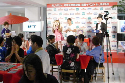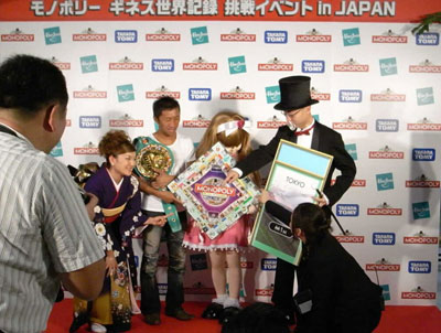 | モノポリーでギネスブックに挑戦!! 〜ワールド版モノポリー 発売記念イベントのご報告〜 皆さん、こんにちは。 このたび、8月27日に開催されました ワールド版モノポリー発売記念イベントの様子を ご報告させていただきます。 ワールド版モノポリーはモノポリー史上初めて 全世界の都市を対象にしたエディションです。 掲載都市は全てウェブ投票にて決定されまして、 日本モノポリー協会では 日本から唯一「立候補」した東京を当選させようと、 まさに選挙運動を一生懸命いたしました。 皆さんのご協力によって、 東京は無事、当選いたしました! 心より感謝しております。 その発売記念イベントは、 8月27日、都内、タカラトミー本社にて開催されました。 このイベント、実は 「全世界で同時に同じモノポリーを遊んでいる人の数」 というギネス記録に挑戦するもので、 従来の記録約1000人を大幅に超えようと、 ワールド版に掲載された都市全てで、 同時にイベントが行われました。 ギネスブックにこんな項目があるなんて、 世界No.1ゲームであるモノポリーならではのことでしょう。 世界同時となると困るのは時間帯。 世界でも早く時間が進んでいる国である日本は、 他の国に合わせたため、 例えばロンドンでは昼に開始のイベントでも 日本では必然的に夜中開始のイベントとなりました。 したがいまして、帰ることができない方が続出しては 大変と、東京では日本モノポリー協会が選抜した、 会場から確実に帰ることができる限定メンバーが ギネス記録に挑戦いたしました。 会場ではロンドンの会場との衛星中継が行われるなど、 全世界規模のイベントならではの、 様々な企画がありましたが、 なんといってサプライズは、 ギネス記録の見届け人として、 ボクシング世界チャンピオンの内藤選手が いらっしゃったことでしょう。 なかなかウィットに富んだコメントで、 会場に多数来場していたメディア陣を喜ばせておりました。 ![]() 真ん中左が世界チャンピオンベルトをもつ内藤選手。 会場近くにジムがあります。 真ん中右でワールド版をもつ女性はご存知「リカちゃん」 ![]() ダースベーダーもなぜか参戦。結構目立ってました。 このダースベーダーもギネスに挑戦いたしました もう一つのサプライズは、 ワールド版発売を記念して、 モノポリー柄のリーボックシューズが発売されたこと。 ![]() モノポリー柄のリーボックシューズ。 3種類あってどれもなかなかかっこいい! 内藤選手にはプレゼントされておりました。 全世界にて限定発売中です このように様々盛り上がったイベント、 結果的に全世界にて約5000人の参加人数となり、 従来の記録を大幅に更新し、 新しいギネス記録となりました。 ![]() イベントが終了し、新しい記録達成が発表された瞬間。 会場ではいっせいに拍手が起こりました もちろん、会場が大いに盛り上がったのは、 記録挑戦に使われたワールド版モノポリーが 非常にすばらしい出来ばえで 遊んでいておもしろかったため。 モノポリー史上初めてのワールド版モノポリーは、 ニューヨーク、ロンドン、パリ、北京、といった、 世界を代表する都市が登場するだけでなく、 細部まで非常に凝ったモノポリーです。 世界を代表する建築物として ピラミッドや摩天楼などが登場するうえ、 コマは日本の相撲力士、エジプトのツタンカーメン オーストラリアのコアラ、スペインの風車など、 各国を代表するキャラクターが勢ぞろい。 コマはなんと24種類!! ![]() 細部まで凝りに凝ったワールドエディション。 建築物は全部で8種類。 遊んでいて、非常に楽しいものとなっています ![]() 駒の全24種類を一挙公開! この中から6種類がランダムで入っています このワールドエディション、 日本での発売数は非常に限られており、 はっきりいってレアグッズです。 希少価値もある、モノポリーの コレクターズアイテムであるのは間違いありません。 発売はタカラトミー社のネット販売のみ。 限定発売かつ24個のコマがランダムで封入となると、 これは「大人買い」しかないかも!? (購入できるのはなんとここだけ) なお日本モノポリー協会では このワールド版モノポリーを使って、 モノポリー日本一を決めるモノポリー日本選手権を開催中! 札幌(10/5)、名古屋(10/12)、福岡(10/26)、 東京(11/3)、大阪(11/16)にて、 ワールド版モノポリーのプレゼントもあります! (なお北陸(11/9)は違うモノポリーを使います) また各地では大会の前日に お茶や軽食でも楽しみながら、きれいな会場で ワールド版モノポリーを楽しむイベントもあります! こんなに素晴らしいワールド版モノポリー、 遊ばないのはもったいない。 このチャンスをお見逃しなく! (ワールド版を使った各種イベントのご案内はここ!) (文章:日本モノポリー協会専務理事・ 2000年モノポリー世界チャンピオン 岡田豊) |