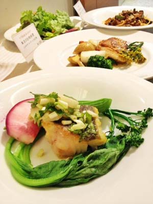 ▲評判の料理の一部。国産の肉や海産物に加え、