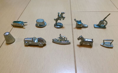 モノポリーの駒をじっくり見てみませんか? 〜会長杯モノポリー大会(5/4)&モノポリーナイト(4/22)開催〜 毎年4月になると日本のモノポリー界は 本格的なシーズンに入ります。 5月のGWまでの今後の予定をざっと記しますと、 ・モノポリーナイト(4/22、東京) ・モノポリー体験会 (4/29、大阪<「どっぷり!昭和町」内イベント) ・会長杯モノポリー大会(5/4、東京) ・こどもの日にモノポリーで遊ぼう! (モノポリーライト)(5/5、大阪) ・モノポリーナイト(5/5、大阪) ・モノポリー日本選手権近畿地区大会(5/6、大阪) ・モノポリー日本選手権東海地区大会(5/7、名古屋) となっていまして、まさにモノポリー三昧です。 今回はこのうち、関東でのイベントを紹介いたします。 5月4日(木・祝)には 第23回日本モノポリー協会「会長杯」 モノポリー大会(東京・大井町)を、 今週末の4月22(土)には、 ドリンクをいただきながらモノポリーを楽しむ モノポリーナイト(東京・日本橋)をそれぞれ開催します。 この2つのイベント、ぜひ「駒」に注目してください! モノポリー界では実は大きな動きが3月下旬にありました。 前々回(2/23)の記事で書きました 「駒の総選挙」の結果が発表されたのです (ここで見ることができます)。 スタンダード版 (米国アトランティックシティが舞台)では、 長年にわたり、以下の10個の駒が標準装備されていました。 ![]() ▲上左から「手押し車」「帽子」「馬」「靴」「大砲」 下左から「指ぬき」「車」「戦艦」「犬」「アイロン」 このうち、まず駒の個数が 10個から8個に減らされる過程で、 「馬」「大砲」がなくなりました。 次に2013年には 残った8個のうちで最も支持されなかった 「アイロン」がリストラされ、 新候補の5個の中で最も支持された「猫」に変わりました。 これはウェブ投票で決まったという方法などについて、 ほぼ日記事(2013年2月8日)に記しまして、 日本でも大反響を呼びました。 そして今回のリストラに至ります。 いや、リストラというよりも「大」リストラ、 一種の「ガラガラポン」ともいえます。 今回もウェブ投票で決まるのですが、 今までの8個も新しい候補約60個も一緒に投票されて 人気順に8個が残るという、 きわめて過酷なものになったのです! (参考までにこちらの記事を見てください。 立候補した全ての駒の画像があります) もちろん、これまでのファンがいる以上、 伝統的な駒には一定の固定投票が期待できますから、 そんなに変わらないのではないか、 という意見もありました。 なにせ、新候補は約60もあるうえ、 「ハッシュタグ」みたいな、 さすがに無理じゃないかと思われる候補もありましたから。 しかし、結果はなかなか残酷でした。 新たに「指ぬき」「靴」「手押し車」がリストラされ、 「ティーレックス(恐竜の一種)」「ペンギン」 「ラバーダック(風呂などに浮かべて遊ぶ、 あひるのおもちゃ)」 が新たに駒に採用されることになりました。 私こと、岡田@2000年世界チャンピオンは 長年愛用している「車」が残留してほっとしましたが、 百田@1988年世界チャンピオンや 山本@過去最多の日本チャンピオン経験者ら 多くのベテランプレーヤーが愛用し、 日本では根強い人気のあった「靴」は あえなくリストラです。 これで長年親しんだ10個の駒のうち、 残ったのはわずか4個。 で、それ以外に加わった4個の駒は 2013年のリストラで加わり、 今回も見事に残留した「猫」も併せて、 全て動物系となりました。 残留した駒には「犬」もありますから、 過半数を動物系が制したことになります。 2013年のリストラで見せた「猫」の強さから、 2013年のリストラのように1個ずつの入れ替えでは 圧倒的に動物系有利。 今回のように全てリストラ対象にすることで、 なんとか非動物系の伝統的な駒のいくつかが 守られたということでしょうか。 振り返って、これまで私どもが関わった ご当地版モノポリーの駒を取り上げますと (スタンダード版と違ってご当地版の駒は 形状を一種類です)、 動物系は2つあります。 ・2006年発売の「秋田県版モノポリー」の駒である 「秋田犬」 ・2017年発売の「日本工芸版モノポリー」の駒である 「鹿」 ここでも動物系人気は健在かもしれませんね。 5月4日開催する会長杯モノポリー大会では 発売1周年を迎えた日本工芸版モノポリーを 基本的に使います。 ぜひ、駒の「鹿」に注目してください。 この大会、日本モノポリー協会主催大会の中でも 伝統ある大きな大会です。 しかし、会長杯の優勝者のこれまでの顔ぶれをみると、 モノポリー界の新星が数多く誕生しています。 それを後押しすべく、今年は新たに 優勝者決定戦では経験の浅い人に やや有利な仕組みが取り入れられます。 優勝者はモノポリー日本一を決める 「日本選手権全国大会」に出場できます。 昨年の日本チャンピオンは初出場者であり、 文字通り新星でした。 それに続き、会長杯でも新星登場に期待したいです。 しかも、初参加の方は無料で参加いただけるので 大チャン