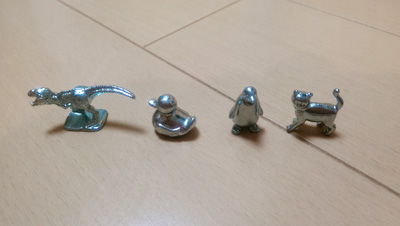 続・トークン(駒)に注目してみませんか 〜モノポリーナイト東京(10/21)のご案内〜 こんにちは。 飲み物をいただきながら気楽にモノポリーを楽しむ。 そんなことができる「モノポリーナイト」を 近々開催します。 今回は東京で10月21日(土)の開催となります。 前々回の記事の中で記しました新トークン4つが入った、 新しいスタンダード版(アトランティックシティ版) モノポリーですが、結構評判のようでありがたいです。 やはり時代は動物シリーズですね。 問い合わせの多く、お待たせして申し訳なかったのですが、 「モノポリー リフレッシュ2017」という名称にて、 10月19日(木)発売開始となりました。 新トークン4つの画像が パッケージに大きくデザインされていますので、 ぜひ店頭でパッケージを手に取って見てくださいね。 ![]() ▲新トークン勢揃い! 左から「ティラノサウルス」「ラバーダック」「ペンギン」「猫」。 新トークン記念大会での人気は、 トークンとしてつかみやすいティラノサウルスだったかも そして、新しく増えるものもあれば、なくなるものもあり。 新しいトークン4つの代わりになくなるのは 長年親しまれてきた 「アイロン」「指ぬき」「靴」「軍艦」。 この4つのトークンが入ったスタンダード版モノポリーは、 現在店頭にある分だけとなっています。 なくなる4つのトークンのファンの皆様はいまのうちに 保存用に買っておくのもありかもしれませんね。 モノポリーナイトではスタンダード版モノポリーでなく、 会津版モノポリー、大河版モノポリーで遊びます。 会津版モノポリーのトークンはおきあがりこぼし風、 大河版モノポリーのトークンは草鞋(わらじ)ですが、 共にあつかいやすく、形状も親しみやすいということで 非常に評判がいいです。 特におきあがりこぼし風の会津版モノポリーのトークンは、 シールで顔の部分を貼るという新試行のものです。 シールのおかげでものすごくラブリーになっていますので、 ぜひモノポリーナイトで手に取って見てくださいね。 また、モノポリーナイトでは 大阪環状線版モノポリーのトークンも展示していますよ。 これは昨年12月にデビューしたばかりの323系列車を モチーフにしたものです。 こちらもお見逃しなく! このモノポリーナイト、モノポリーデビューには ぴったりのイベントです。 土井田@2015年世界選手権第4位をはじめとする ベテランプレーヤーと一緒に遊びながら、 ルールもテクニックも教わることができます。 ルールをご存じない方でも何ら問題ありません。 しかも、数に限りがありますが、 初参加者にはご家族で一つ、 大河版モノポリーをプレゼント! あと今回限りで、 私こと岡田@2000年世界チャンピオンが。 プライベートで立ち寄った石垣島の土産として、 「ロイズ石垣島の黒糖チョコレート」を 先着16人に2切れほどプレゼントします! 黒糖とチョコってなかなか合うのです。 事前申し込みの必要がありませんので、 気楽にお立ち寄りください!! ----------------------------- ●モノポリーナイト(東京) 日時:10月21日(土)16時30分〜19時30分 場所:日本橋三越本店 本館7階 Hajimarino cafe(はじまりのカフェ) JR東京駅から徒歩5分くらい 地下鉄日本橋駅・三越前駅直結 参加費:2160円(ソフトドリンク1杯付きです) ・初参加者の方は半額の1080円! かつ、大河版モノポリーをご家族に一つ、プレゼント! (数に限りがありますので先着順となります) ・高校生以下の方は、初参加でなくても無料! ・モノポリー講習会(東京・大森)に参加される方は無料! ※モノポリーナイトの詳細はこちら」 ----------------------------- ○「モノポリーライト・ナイト」は毎月1回程度、 東京圏で開催する予定です。 また、大阪圏では不定期開催です。 (文章:日本モノポリー協会専務理事・ 2000年モノポリー世界チャンピオン 岡田豊) |
