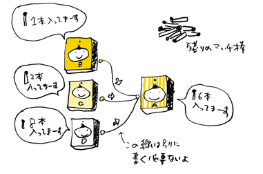 セル君が受け渡しする電気信号の量をマッチ棒で表します。