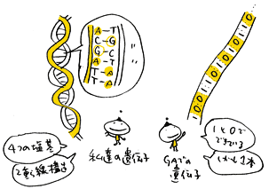 塩基に相当するものは2種類の数字、<0,1>になります。