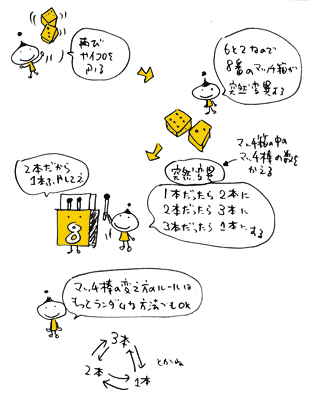 ・マッチ棒が3本だったら、マッチ棒を1本にする