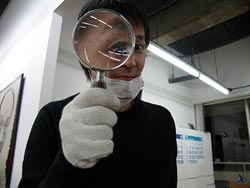 拡大鏡を見つけた播口。