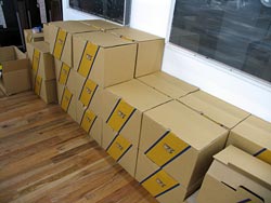 必要なものはダンボールにまとめられ、