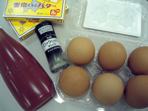 卵、ケチャップ、こしょう、バター、