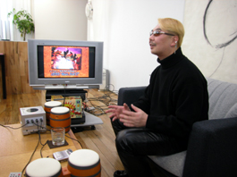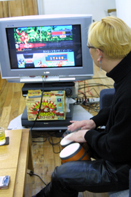 テレビ画面に映し出される曲のリズム(指示)に合わせて、