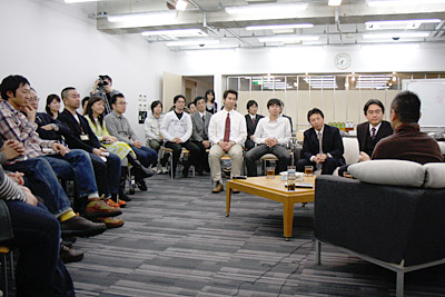 岩田社長と開発者の方々の目に「にこにこり村」は