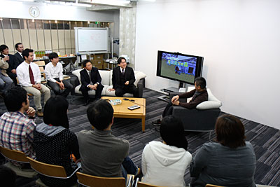 岩田社長と開発者の方々の目に「にこにこり村」は