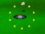 | ティーショットを打つ前に、 元気くんはホール全景画面を見て、方向を微調整。 みごとフェアウエイの真ん中に落としました。 フェードするワリオのクセを完全に把握しています。 智充くんは、迷いなく豪快にショット。 続いてのイチローさんは、2打目にして 「よしっ!」 ガッツポーズの横山チーム。 クラブが、芝をたたく鈍い音がしました。 無念。またもや、打点が早すぎです。 |