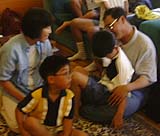 「優勝を狙います!」 (子・M智充くん) ![]() 唯一のお母さん選手・M啓子さんと 智充くんのペア ボロボロになった攻略本を試合直前まで放さなかったMチーム。 |