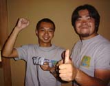 「へっへっへ。どーだ!」 と口の端をゆがめて自慢気に笑います。 |