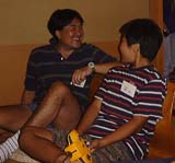 「どうだっ!」 と観客席に向かってガッツポーズ。一同、シ〜〜ン。 |
