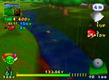 ![]() ボールが川に落ちた瞬間、元気よく 飛びだしたのはプクプク。 ウオーターハザードは1打プラスさ れるため、かなり痛い
