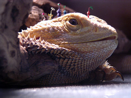 イグアナの頭にチョコンと乗っかったピクミンたち。