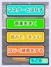 | しゅぎょう 手首のスナップを利用して、出されるおまんじゅうを 口へと飛ばすリズムゲーム。 ミスせず続けられると、どんどんヒゲが伸びてきます。 このリズムゲームを見て とんねるずの「木梨憲武さん」を思い出す方は 確実に30代以上の方でしょう。 |
