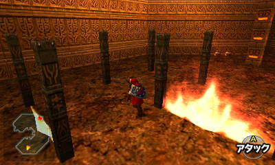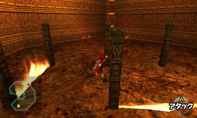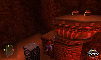 部屋の左側のほうの足場をジャンプで渡っていきましょう。
