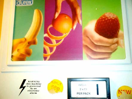 必ずといっていいほどコンドームの自販機がおいてあるみたい。