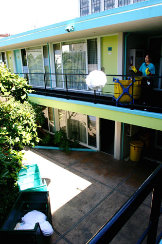 モーテルのメイドさんも、くるっとまるめたシーツで