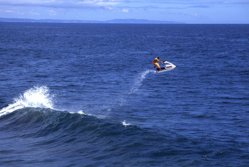 ジェットスキーで大きくJUMPしているのは、ランディー・レイン選手。
