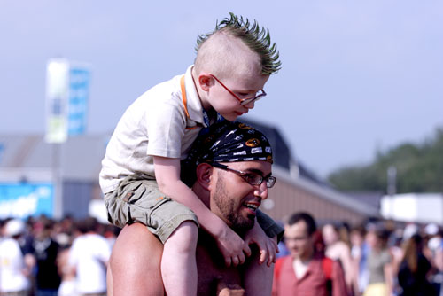 パパのたくましい肩の上で、モヒカンkidはゴキゲン♪