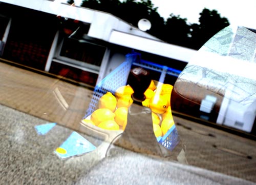 駐車してあった車の助手席に、カゴ一杯のレモンを発見。