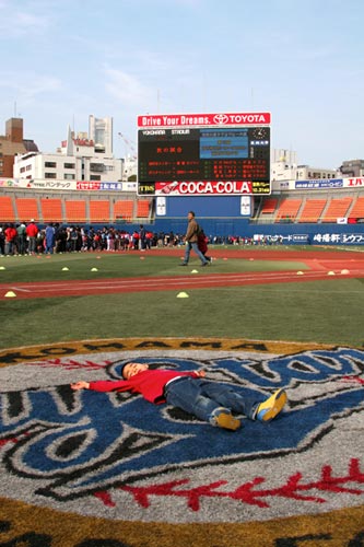 横浜スタジアムで、野球にでもタグラグビーにでもなく