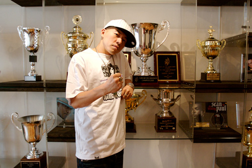 優勝カップが数十個もズラリと並んだ部屋は