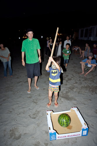 たのしい、たのしいスイカ割り。花火の後は、スイカ割り♪