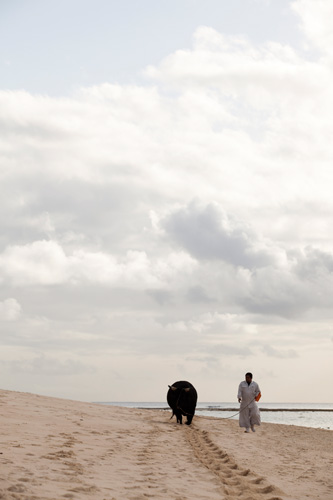 のし、のし、闘牛だって散歩くらいするさ〜。