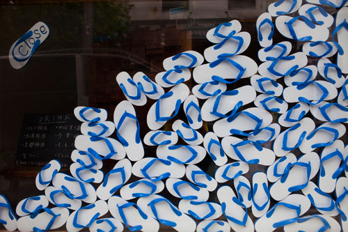 那覇のカフェのウインドウ・ディスプレイ。