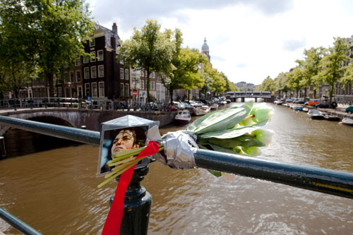 アムステルダムの街では、橋の手すりに