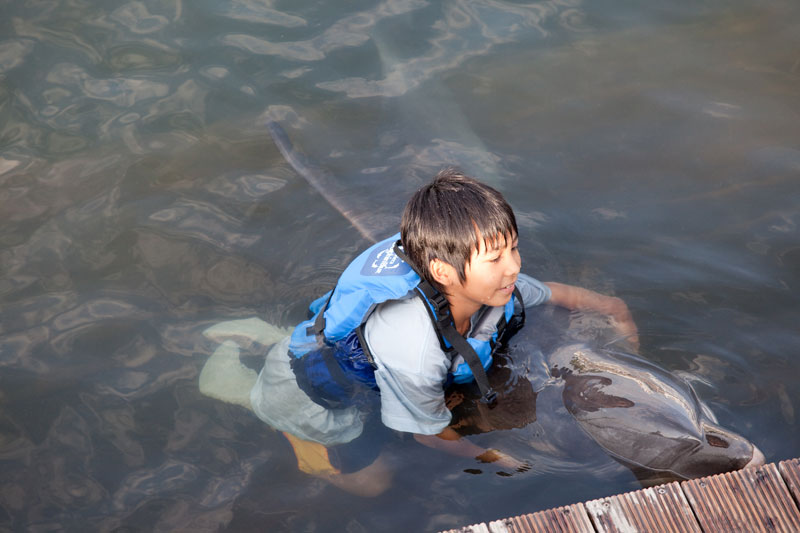 海中でイルカと触れあえる、ドルフィン・ハグ体験。